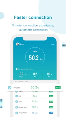 Följ din hälsa och vikt exakt. Denna app parkopplas via Bluetooth 4.0 för att visa viktdata, hälsostatus och BMI på din mobil. Håll koll på din figur med dagliga mätningar och få insikter om din utveckling. Ditt välmående, enkelt och överskådligt.