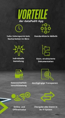 dataPads åtagande är att erbjuda en helhetslösning där alla era formulär samlas i en och samma applikation, med personligt anpassade mallar som perfekt matchar era specifika behov. Som en fullt integrerbar SaaS-lösning "All in One" garanterar dataPad kontinuerlig datatillgänglighet och inkluderar alla framtida uppdateringar, uppgraderingar samt telefonsupport. Säkerheten är av yttersta vikt; dataPad uppfyller alla krav enligt GDPR och lagrar er data i ett ISO-certifierat datacentrum, INTERXION i Wien, som lever upp till de strängaste internationella standarderna för informationssäkerhet. Med dataPad får ni inte bara effektivitet utan också trygghet i er digitala dokumentation.