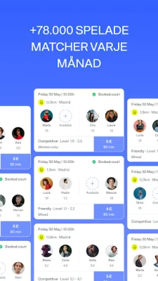 Fördjupa dig i padelns dynamiska värld med Playtomic, den ultimata plattformen för att knyta kontakter och utveckla ditt spel. Oavsett om du vill förstärka befintliga vänskapsband på banan eller upptäcka nya spelpartners, sammanför Playtomic dig med likasinnade entusiaster från din lokala klubb eller i närheten. Följ dina favoritspelare, få skräddarsydda rekommendationer och engagera dig i konversationer med dina lagkamrater för att dela framsteg och glädje. Playtomic skapar en levande social arena där möten, spel och gemenskap står i fokus.