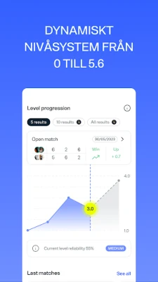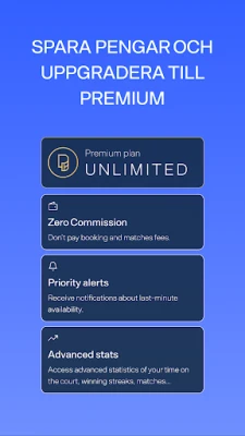 Få insikt i din padelresa genom Playtomics detaljerade statistikverktyg. Redan med ett gratis konto kan du enkelt överblicka dina spelade matcher, vinster och förluster samt senaste resultat. För den som strävar efter att optimera varje slag och utmaning är Playtomic Premium nyckeln till en fördjupad upplevelse. Som Premium-medlem får du avancerad prestationsdata som avslöjar din bästa segerserie, identifierar dina mest krävande motståndare och jämför din utveckling med andra spelare. Njut av ekonomiska fördelar med reducerade bokningsavgifter och prioriterade, personliga aviseringar för att aldrig missa en spännande match eller ett ledigt banpass. Dina matcher framhävs som "Guldmatcher" för maximal synlighet, och vi garanterar omedelbar banallokering för att du alltid ska kunna spela. Med Playtomic Premium tar du kontroll över din prestation och upplever padeln utan gränser.