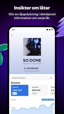Dyk djupt in i din musikaliska värld med detaljerade insikter om dina lyssnare. Spotify for Artists låter dig se exakt vem som upptäcker din musik, var de befinner sig och hur dina låtar presterar i spellistor – allt i realtid. Fira ögonblicken när nya releaser tar fart, uppmärksamma när du läggs till i viktiga spellistor och följ din växande fanbase. Dessutom kan du personifiera din artistprofil, kurera "Artisten rekommenderar" och berika varje spår med fängslande visuella Canvas-loopar för att skapa en ännu djupare upplevelse för dina fans.